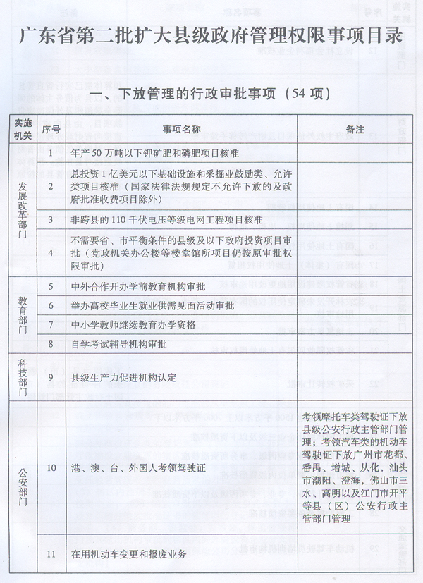 | 名稱: | 廣東省第二批擴大縣級政府管理權(quán)限事項目錄 | ||