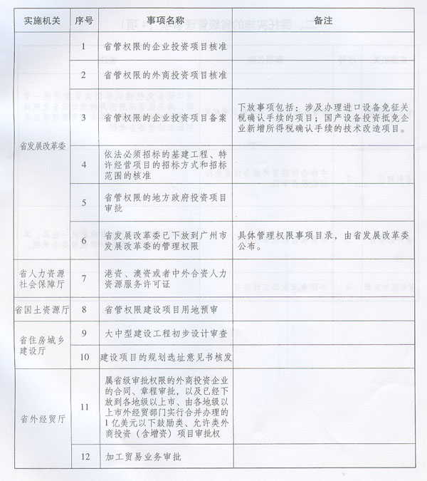 | 名稱: | 廣東省第一批調整由中新廣州知識城管理委員會實施的省級管理權限事項目錄 | ||